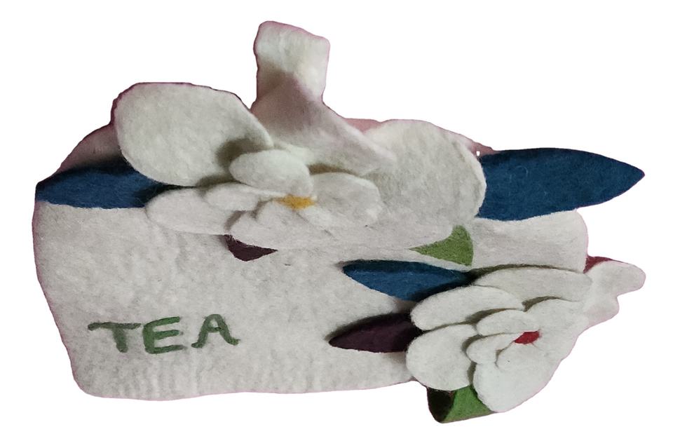 ชุดเครื่องใช้ในครัวผ้าสักหลาดชาที่สะดวกสบายพร้อมดีไซน์ดอกไม้สวยงามเป็นมิตรต่อสิ่งแวดล้อมทำด้วยมือ