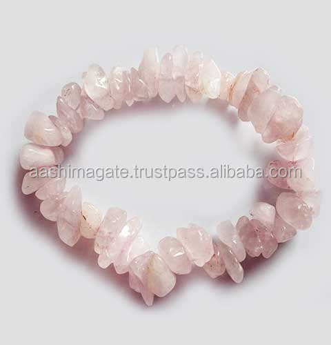 กำไลข้อมือยางยืดประดับด้วยชิปโรสควอตซ์ทำมือรักษ์โลก พร้อมหินอาเกตแห่งความรัก สำหรับผู้ชายและผู้หญิง เครื่องประดับแฟชั่น