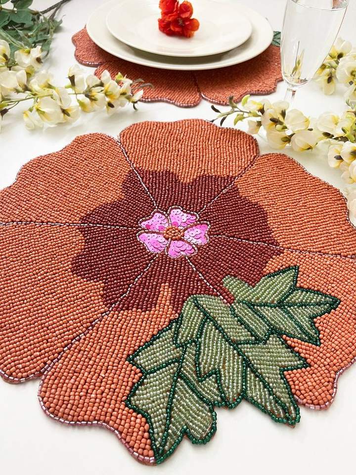 Handmade Eco-Friendly Glass Bead Fibric Tablemat Set Heat Resistant Multi-Use for Weddings Parties-Customizable Portrait