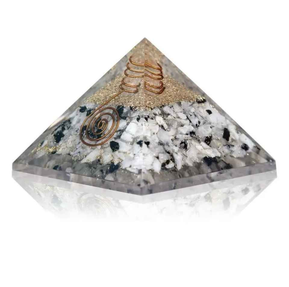 พีระมิดออร์โกไนต์ลาบราโดไรต์ทำมือรักษ์โลก พร้อมขดลวดทองแดงและทองคำเปลว สำหรับเสริมความรักตามหลักฮวงจุ้ย ป้องกันคลื่นแม่เหล็กไฟฟ้า และบำบัดด้วยพลังงาน