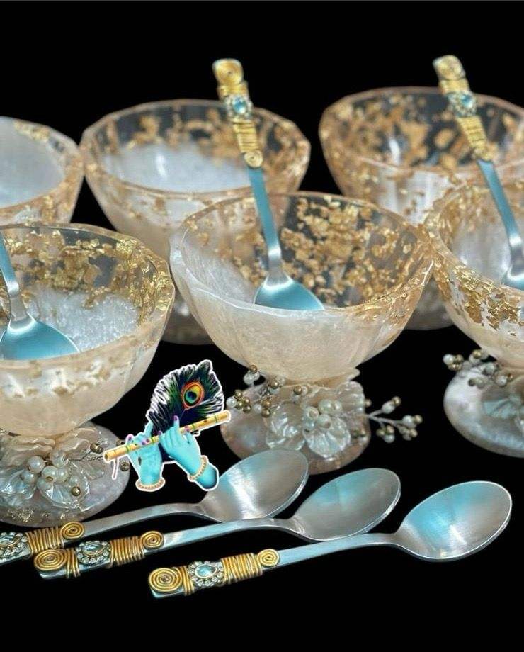 ชุดถ้วยแก้วและช้อนทำมือรักษ์โลกสุดหรู พร้อมชามเสิร์ฟ สำหรับงานแต่งงานและงานเลี้ยง จากอินเดีย