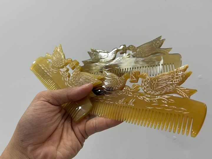 Handmade Eco-Friendly Natural Buffalo Ox Horn Comb Anti-Static Pocket Hair Comb for Home Salon Classic Middle Ages Design Custom