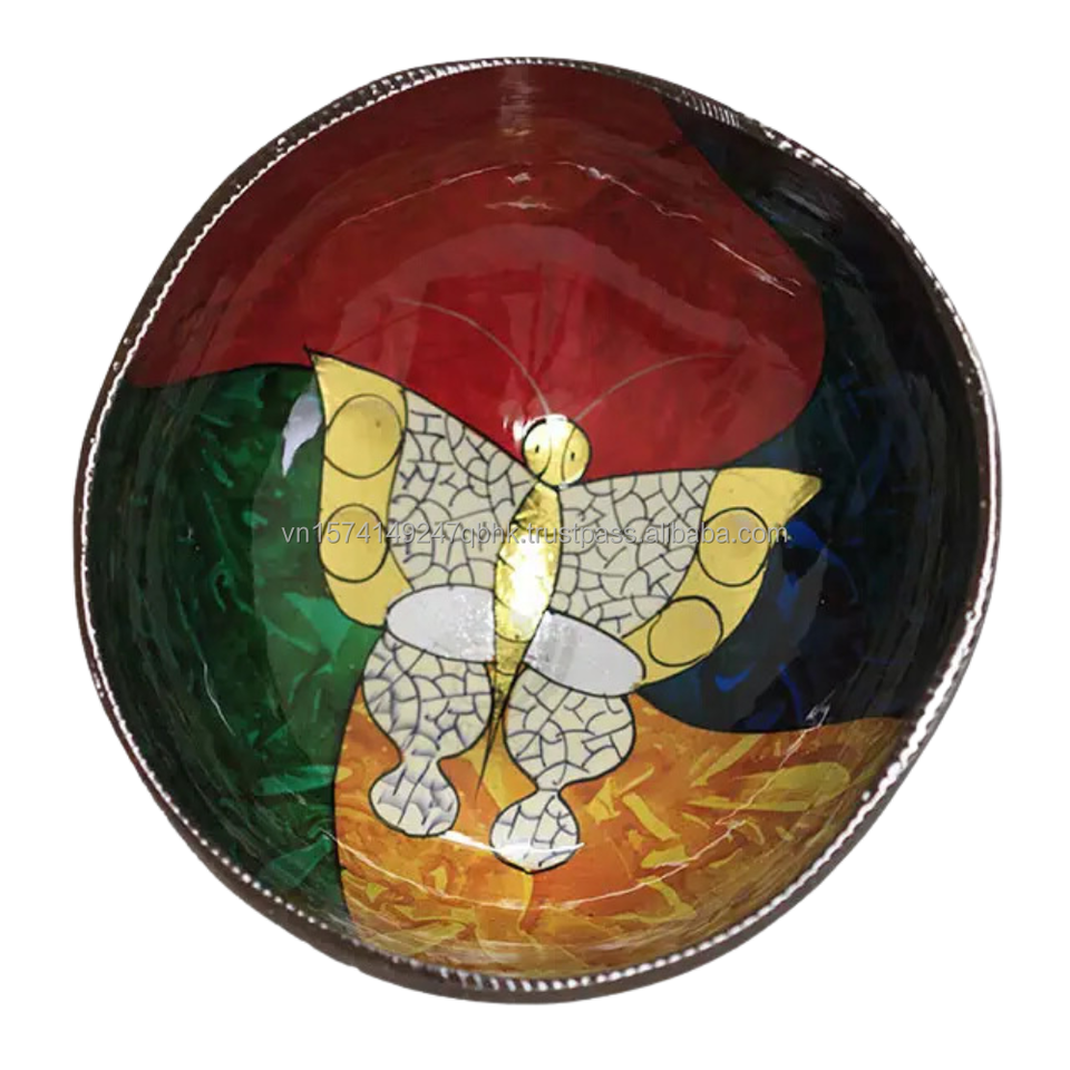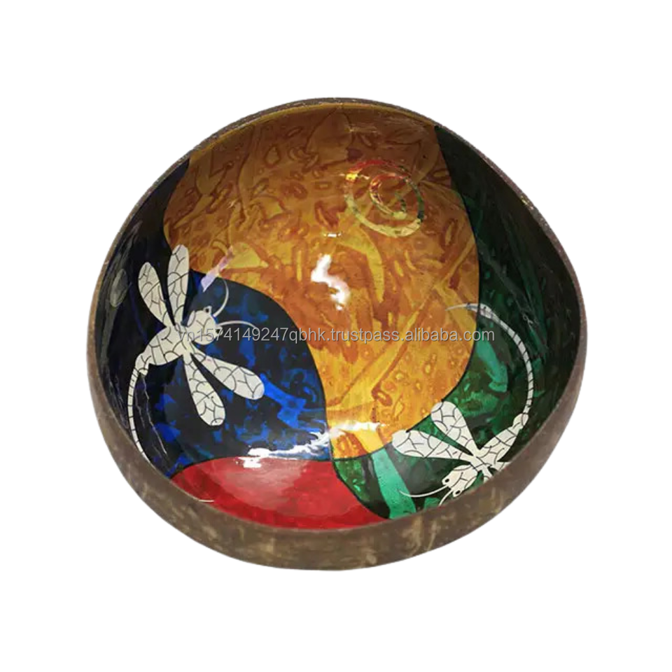 ชุดชามกะลามะพร้าวเคลือบธรรมชาติเป็นมิตรต่อสิ่งแวดล้อมทำด้วยมือสำหรับเดินทางทำจากเวียดนาม