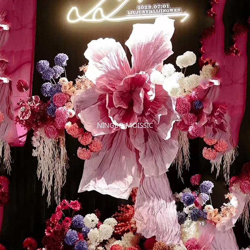 ฉากหลังงานแต่งงานรูปสี่เหลี่ยมผืนผ้าขนาดใหญ่ 200 ซม. ทำมือ เป็นมิตรกับสิ่งแวดล้อม ใช้ซ้ำได้ ตกแต่งด้วยดอกไม้ ศิลปะสมัยใหม่
