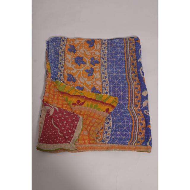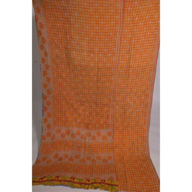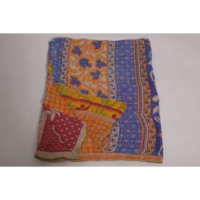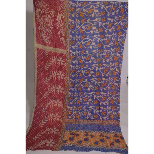 ผ้าห่มคันธาพิมพ์ลายดอกไม้ทำมือเป็นมิตรกับสิ่งแวดล้อม ผ้าฝ้ายอินเดียสไตล์วินเทจโบโฮ ผ้าคลุมเตียงแบบสองด้าน ของขวัญตกแต่งบ้าน