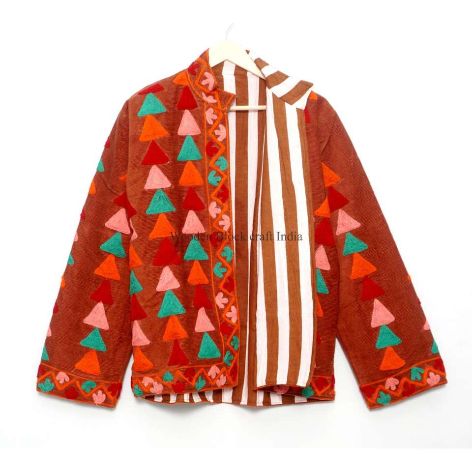 เสื้อแจ็คเก็ตคอตตอนคอตริซปักลายดอกไม้ ปิดด้วยกระดุม สไตล์ลำลองสำหรับผู้หญิง ฤดูหนาว แรงบันดาลใจจากชายหาด ผลิตด้วยมือ เป็นมิตรกับสิ่งแวดล้อม