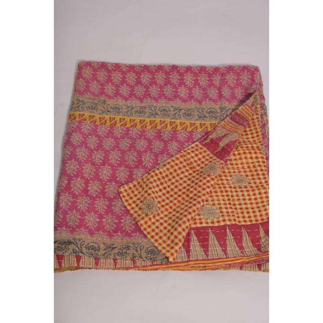 ผ้าห่มกันธาทำมือ เป็นมิตรกับสิ่งแวดล้อม ซักได้ ลายดอกไม้สไตล์อินเดียโบราณ ผ้าฝ้าย โบโฮ ผ้าคลุมเตียง ผ้าห่มสองด้าน