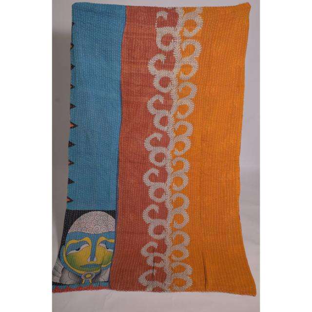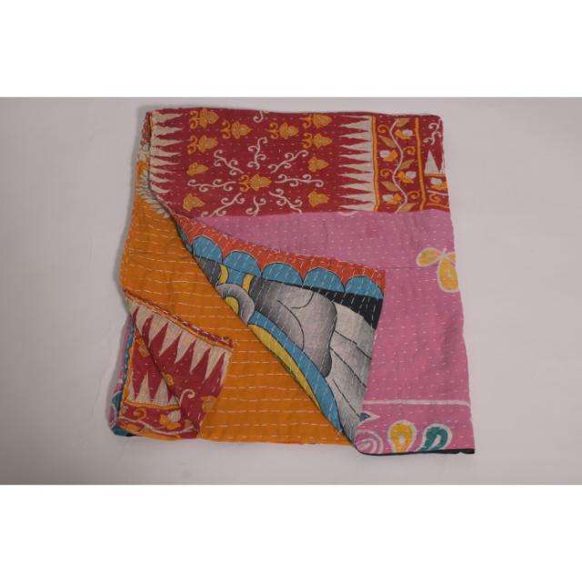 ผ้าห่มกันธาพิมพ์ลายทำมือ เป็นมิตรกับสิ่งแวดล้อม ซักได้ ลายดอกไม้สไตล์วินเทจ ผ้าฝ้ายอินเดีย โบโฮ ผ้าคลุมเตียง ผ้าห่มสองด้าน สำหรับใช้ในบ้าน