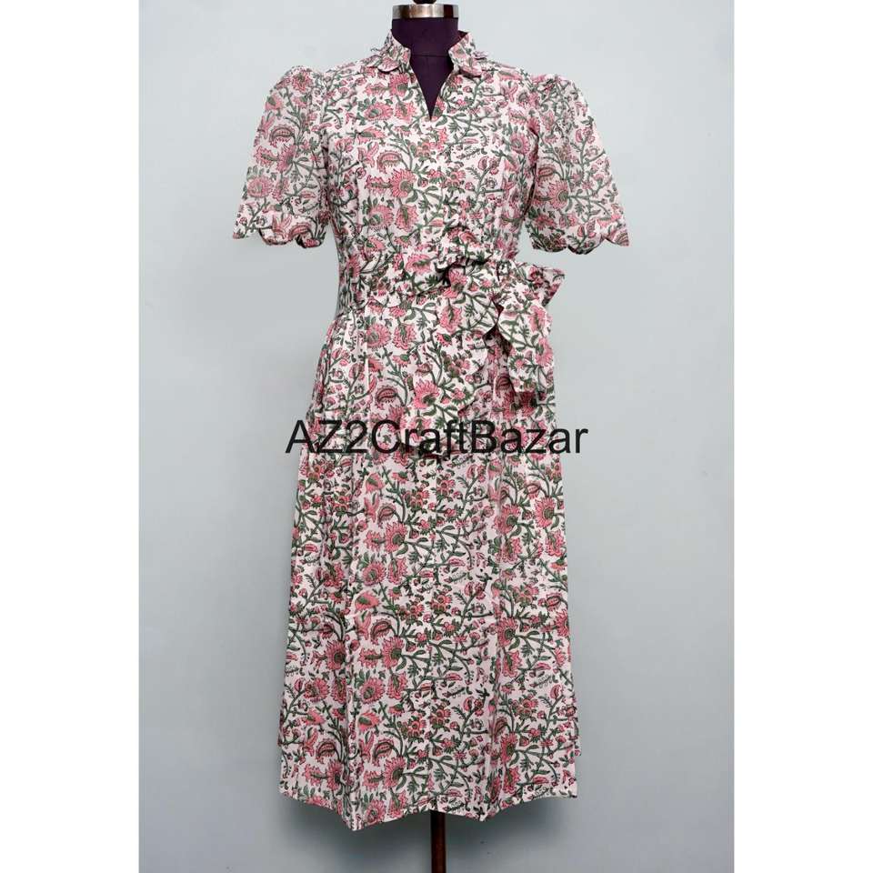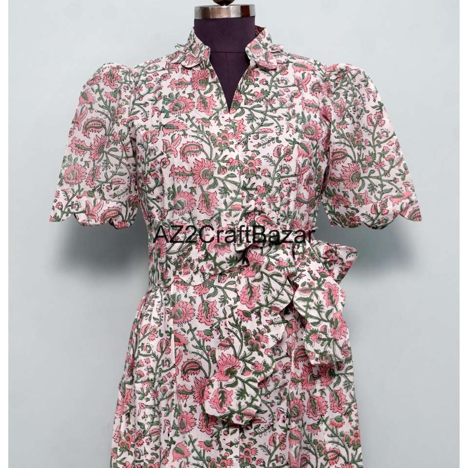 ชุดเดรสทรงเอผ้าฝ้าย 100% สำหรับผู้หญิง ทำมือ เป็นมิตรกับสิ่งแวดล้อม คอวี แขนสั้น ลายดอกไม้ ระบายอากาศได้ดี ซักได้