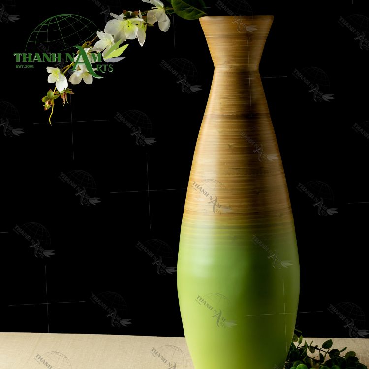 แจกันดอกไม้ไม้ไผ่รักษ์โลกทำด้วยมืองานฝีมือธรรมชาติสำหรับจัดแสดงบนโต๊ะและจัดดอกไม้สำหรับตกแต่งบ้าน