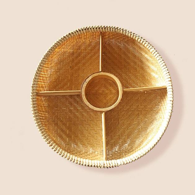 ถาดหวายไม้ไผ่เป็นมิตรกับสิ่งแวดล้อมทำด้วยมือและปลอดภัยต่ออาหารลายดอกไม้สีสันสดใส