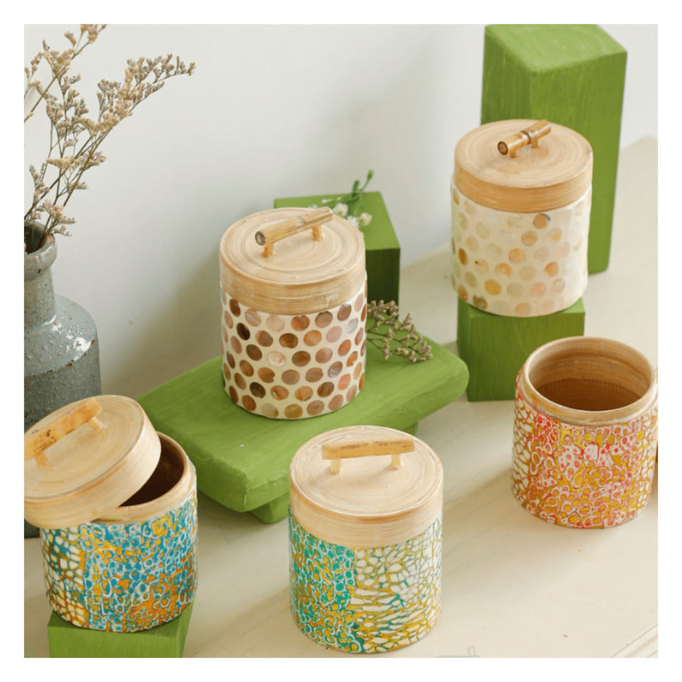 กระปุกไม้กลมทำมือ ฝังเปลือกไข่ ตกแต่งด้วยไม้ไผ่ พร้อมฝาปิด ประดับมุก สำหรับเป็นของขวัญในวันหยุด หรือใช้ตกแต่ง