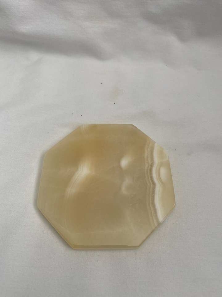 แผ่นรองแก้วหินอลาบาสเตอร์อียิปต์ทำมือ พร้อมแผ่นรองกำมะหยี่ ขนาด 3.5 นิ้ว รูปทรงหกเหลี่ยม
