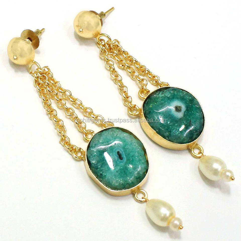 Handmade Elegant Agate Drop Earrings Fashion Solar Quartz Druzy Mop and Pearl Kisses Beautifully Designed Quartz