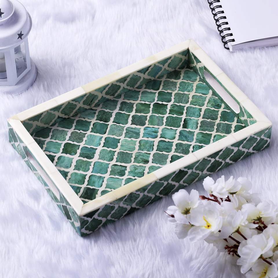 ถาดออตโตมันฝังกระดูกที่หรูหราทำด้วยมือถาดอเนกประสงค์สำหรับตกแต่งบ้านห้องครัวร้านอาหารเสิร์ฟอาหาร