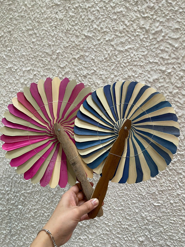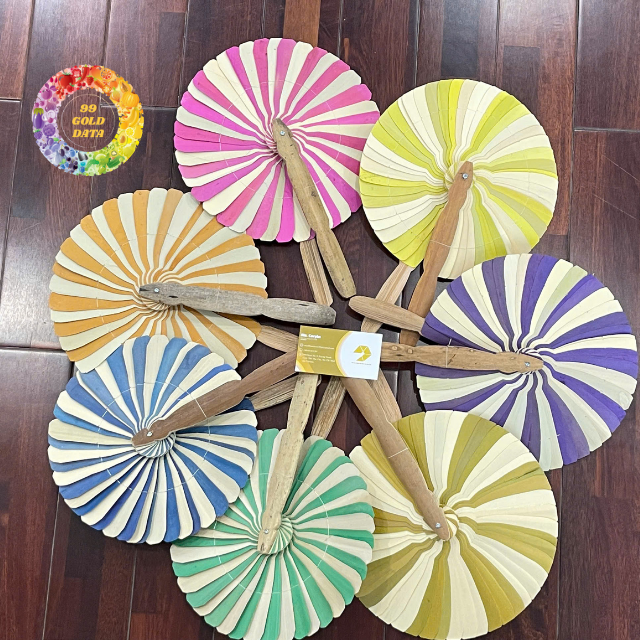 พัดไม้ไผ่สไตล์เวียดนามพื้นเมืองงานฝีมือดีไซน์หรูหราทำด้วยมือสไตล์คลาสสิกด้วยใยมะพร้าวสำหรับใช้ในงานปาร์ตี้