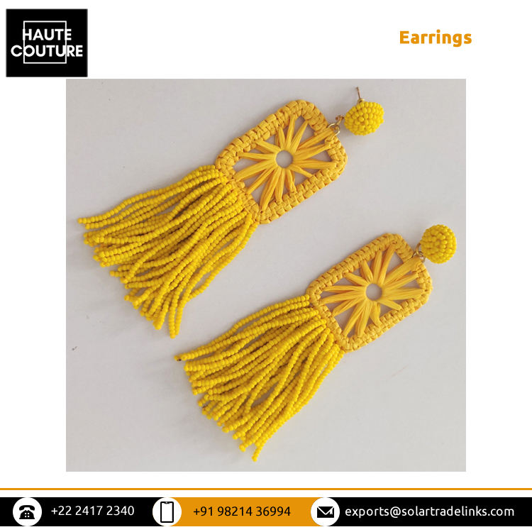 หมายเลขรุ่น:Raffia Rectangle with Beads Tassels Earrings