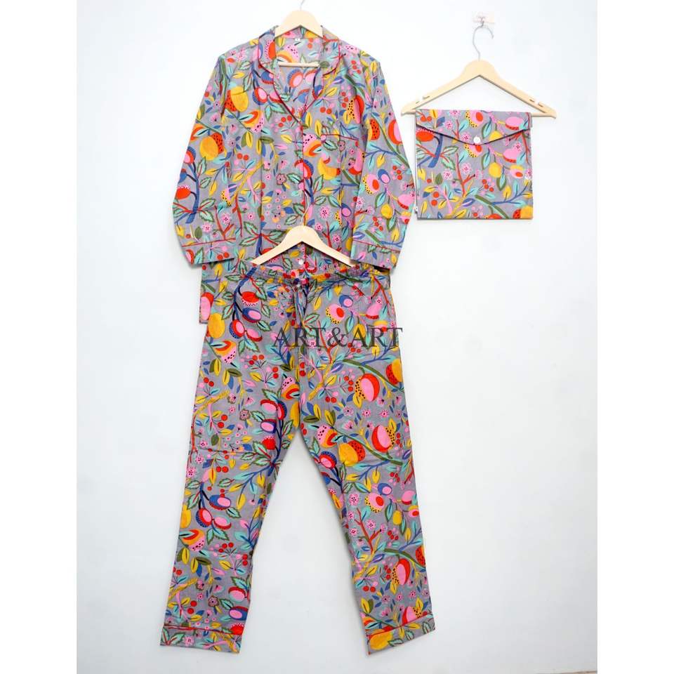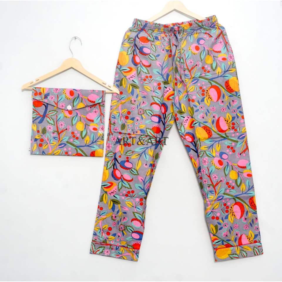 ชุดนอนผู้หญิงลายดอกไม้น่ารัก สวยงาม หรูหรา ทำด้วยมือ ผ้าฝ้าย 100% เอวยางยืด แขนยาว ขายาวเต็มตัว