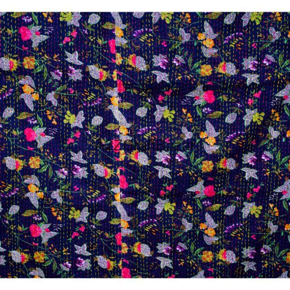 ผ้านวมปักมือ 100% ผ้าฝ้ายแท้ สไตล์วินเทจ คันธา แบบสองด้าน ใช้ได้ทุกฤดู เป็นมิตรกับสิ่งแวดล้อม เหมาะสำหรับใช้ในบ้านและโรงแรม