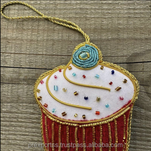 เครื่องประดับที่แขวนทำด้วยมือทำจากอัลลอยลูกปัดของประดับต้นคริสต์มาสทำจากด้าย zari Christian Holiday