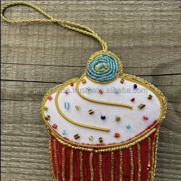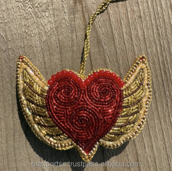 เครื่องประดับแบบห้อยประดับด้วยลูกปัดอัลลอยรูปหัวใจงานปักทำมือสำหรับตกแต่งต้นคริสต์มาส zari Thread คริสเตียนสำหรับผู้ชาย