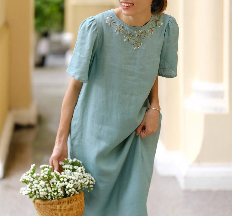 ชุดปักผ้าลินินทำด้วยมือและเสื้อแบบดั้งเดิมสำหรับผู้หญิง
