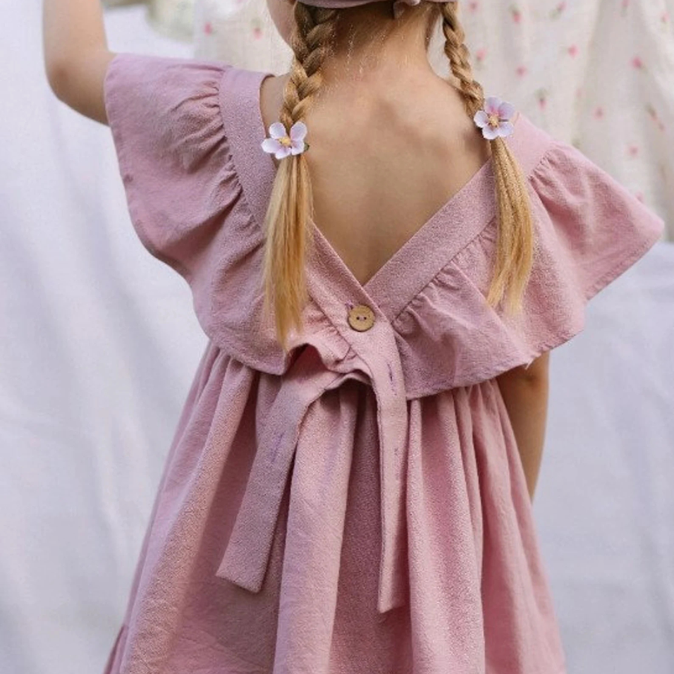 ชุดเดรสผ้าลินินปักทำด้วยมือสำหรับเด็กผู้หญิงสไตล์ลำลองสำหรับวันเกิดครั้งแรกของเด็กวัยหัดเดินผลิตในเวียดนาม