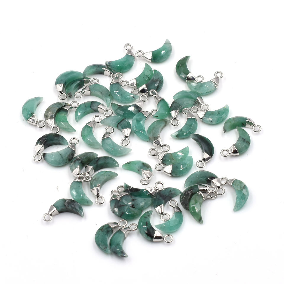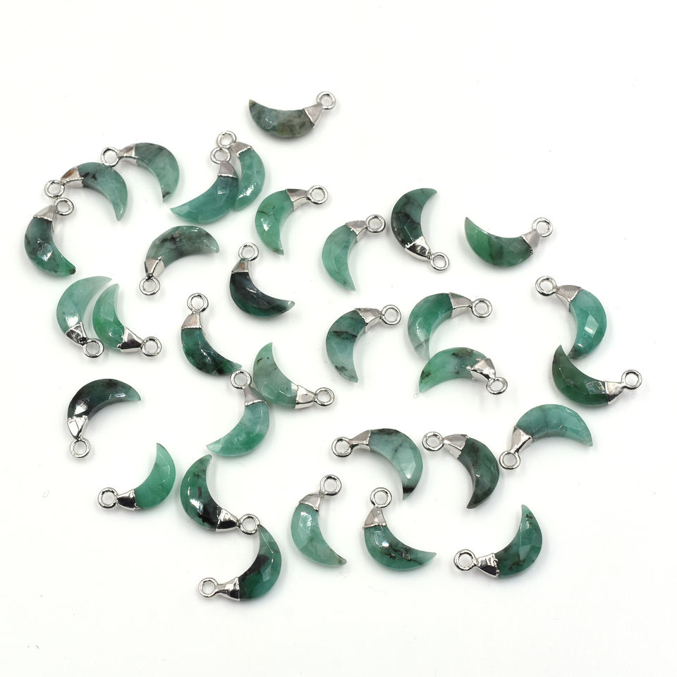 จี้มรกตทรงพระจันทร์ขนาด 11 ถึง 13 มม. ชุบเงิน พร้อมห่วงสำหรับทำเครื่องประดับ