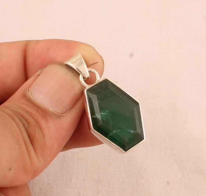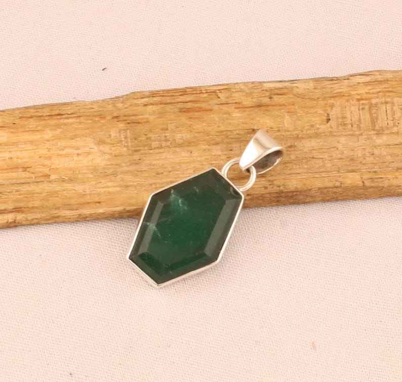 925จี้พลอยหกเหลี่ยมสีเขียวมรกตทำด้วยมือเครื่องประดับเงินสเตอร์ลิงสร้อยคอหรูหราของขวัญสำหรับเธอ
