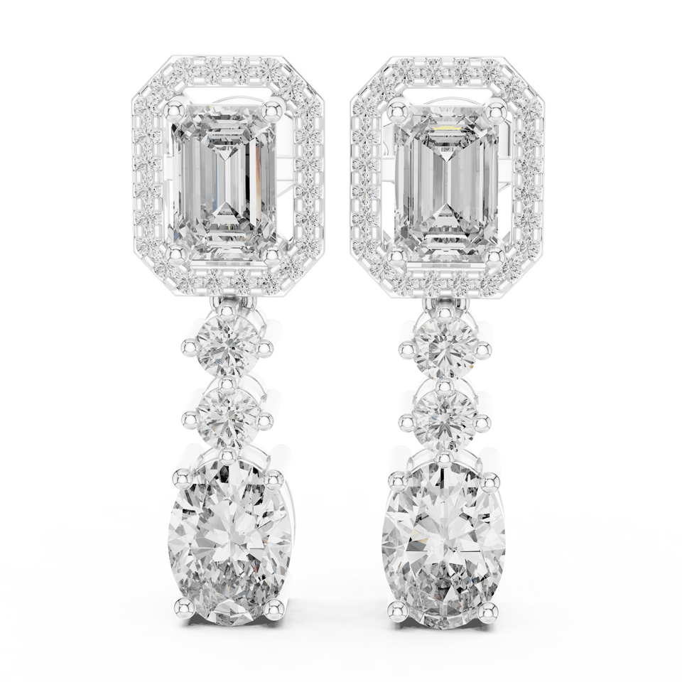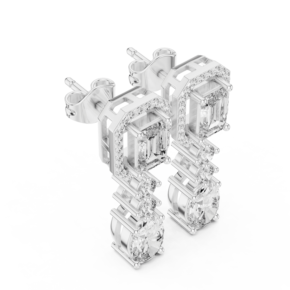 ต่างหูทรงหยดน้ำประดับมรกตทำมือ ตัวเรือนทองคำชมพู 14K ประดับเพชรทรงเหลี่ยมแบบสเต็ปคัท เพชรเลี้ยงในห้องปฏิบัติการ ต่างหูระย้าหรูหรา เครื่องประดับชั้นดี