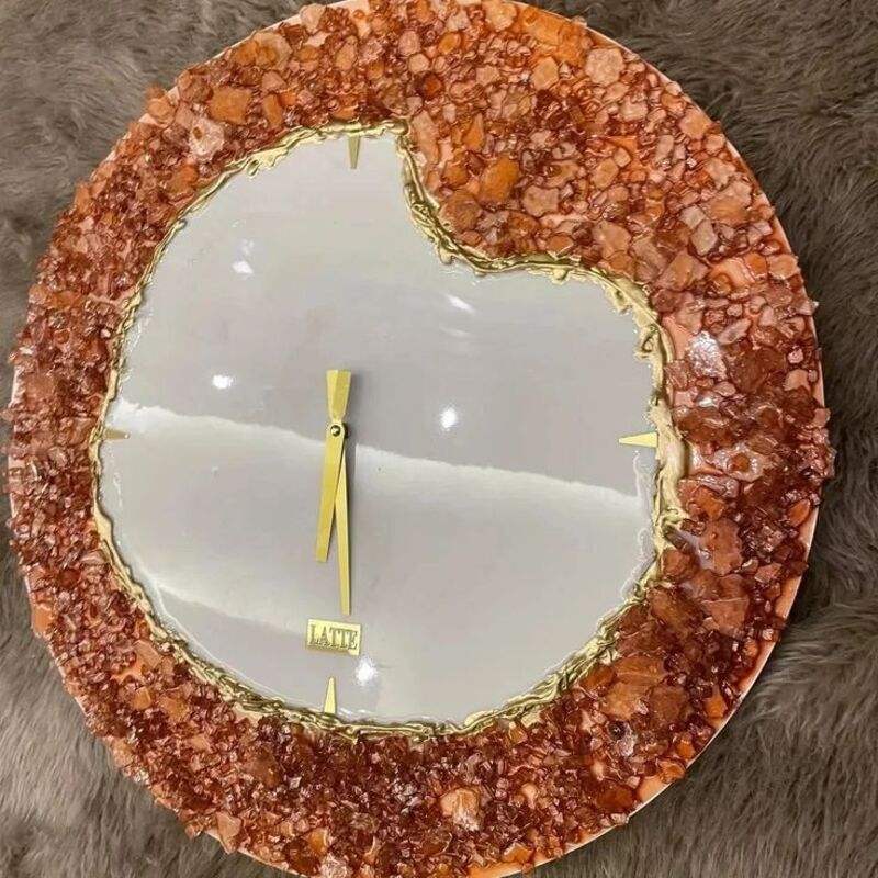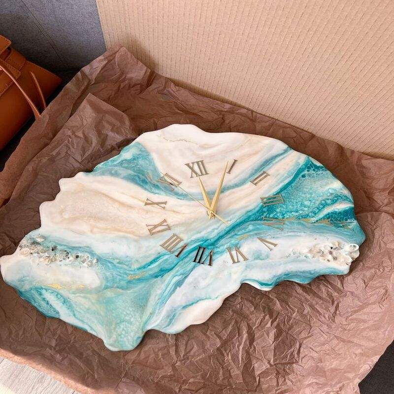นาฬิกาเรซิ่นอีพ็อกซี่แบบแขวนทำด้วยมือดีไซน์นามธรรมทันสมัยเคลื่อนไหวกวาดเงียบปรับขนาดสีได้ตามต้องการสำหรับตกแต่งบ้าน