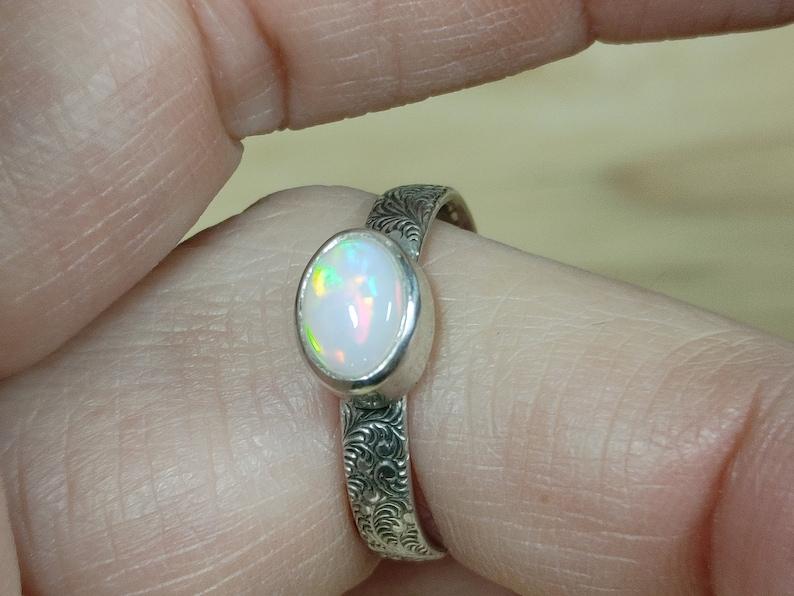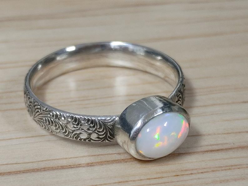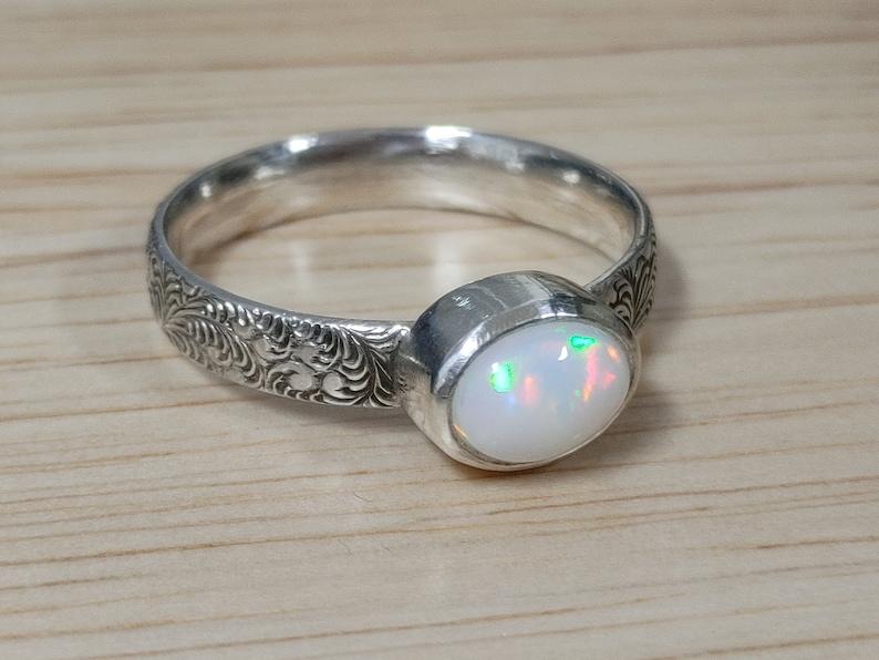 แหวนโอปอลเอธิโอเปียนทำด้วยมือเงินแท้สีขาวโอปอลอัญมณีสีขาวของขวัญครบรอบสำหรับผู้หญิงอัญมณีหลวม