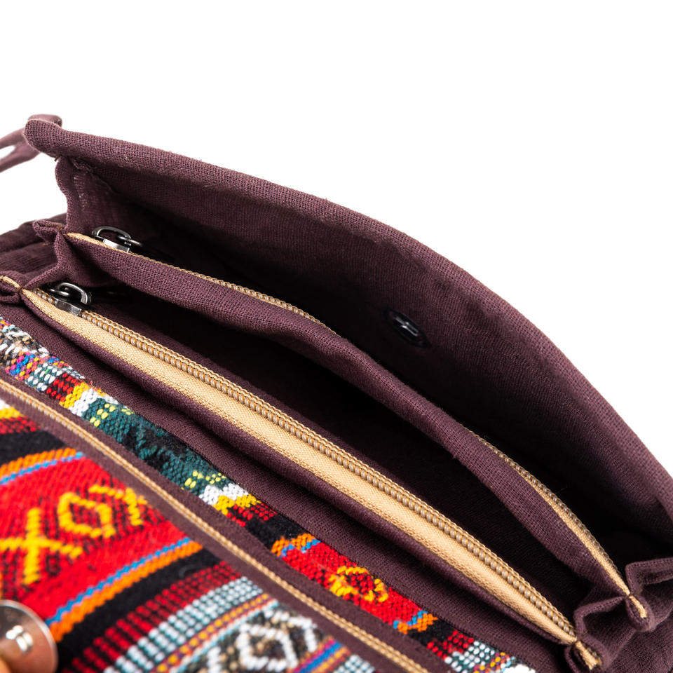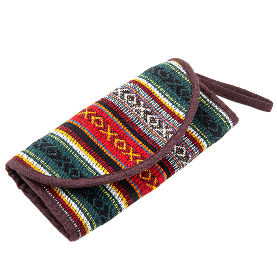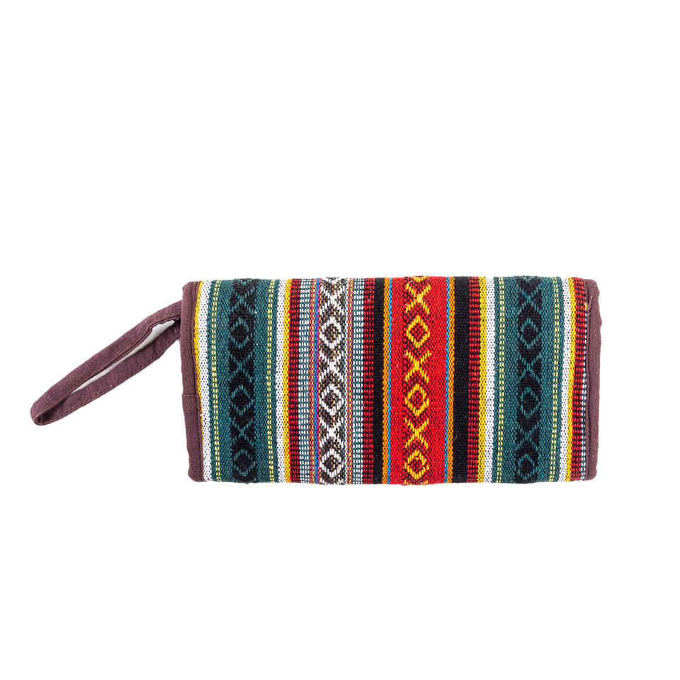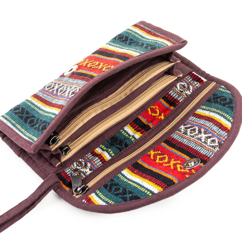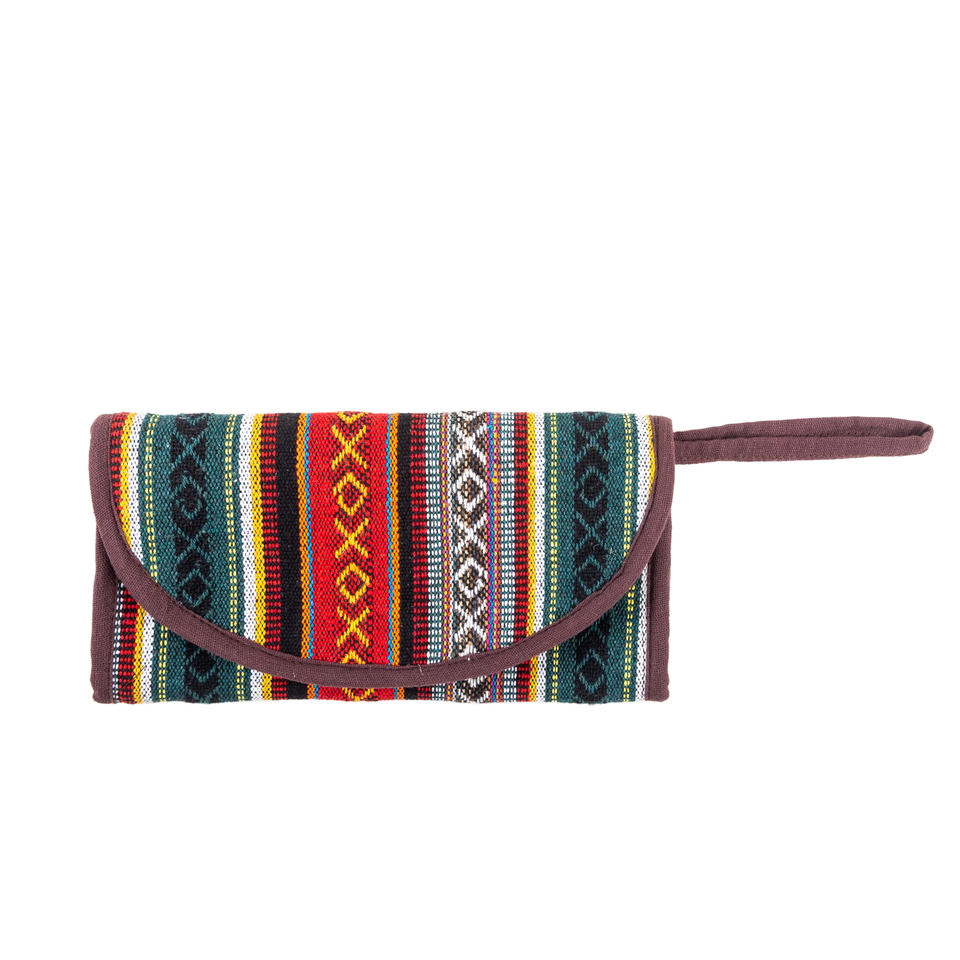 กระเป๋าคลัทช์พิมพ์ลายชนเผ่าทำมือจากป่านแบบพกพาสำหรับผู้หญิง กระเป๋าสตางค์ซิปหลายช่องพร้อมสายคล้องข้อมือ