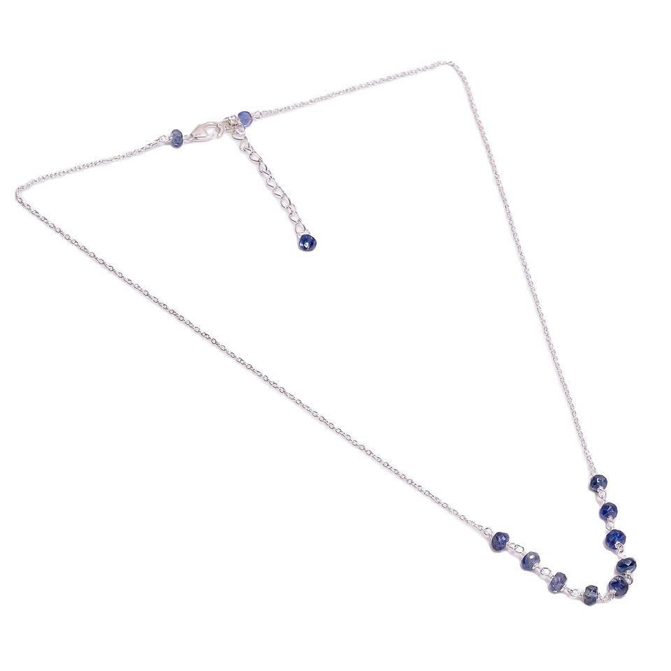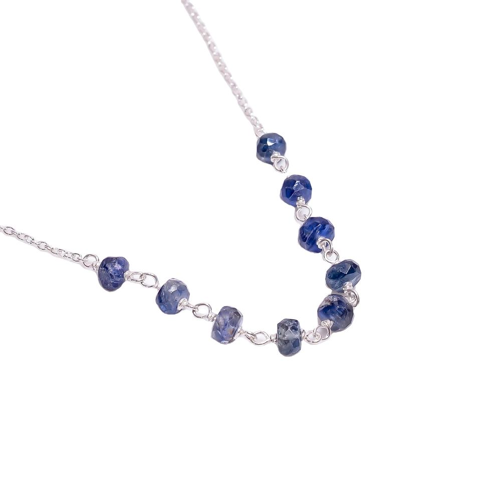สร้อยคอแฮนด์เมดสไตล์ชาติพันธุ์พร้อมลูกปัดไพลินธรรมชาติสีฟ้า