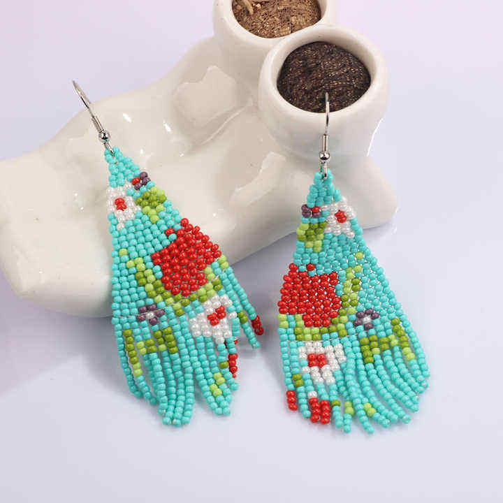 ต่างหูลูกปัดแบบห้อยสไตล์ชนเผ่าทำด้วยมือเครื่องประดับลูกปัดหลากสีแฟชั่นงานปาร์ตี้ต่างหูแบบห้อยดีไซน์รูปทรงคู่รัก