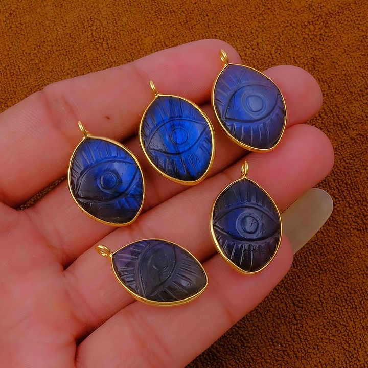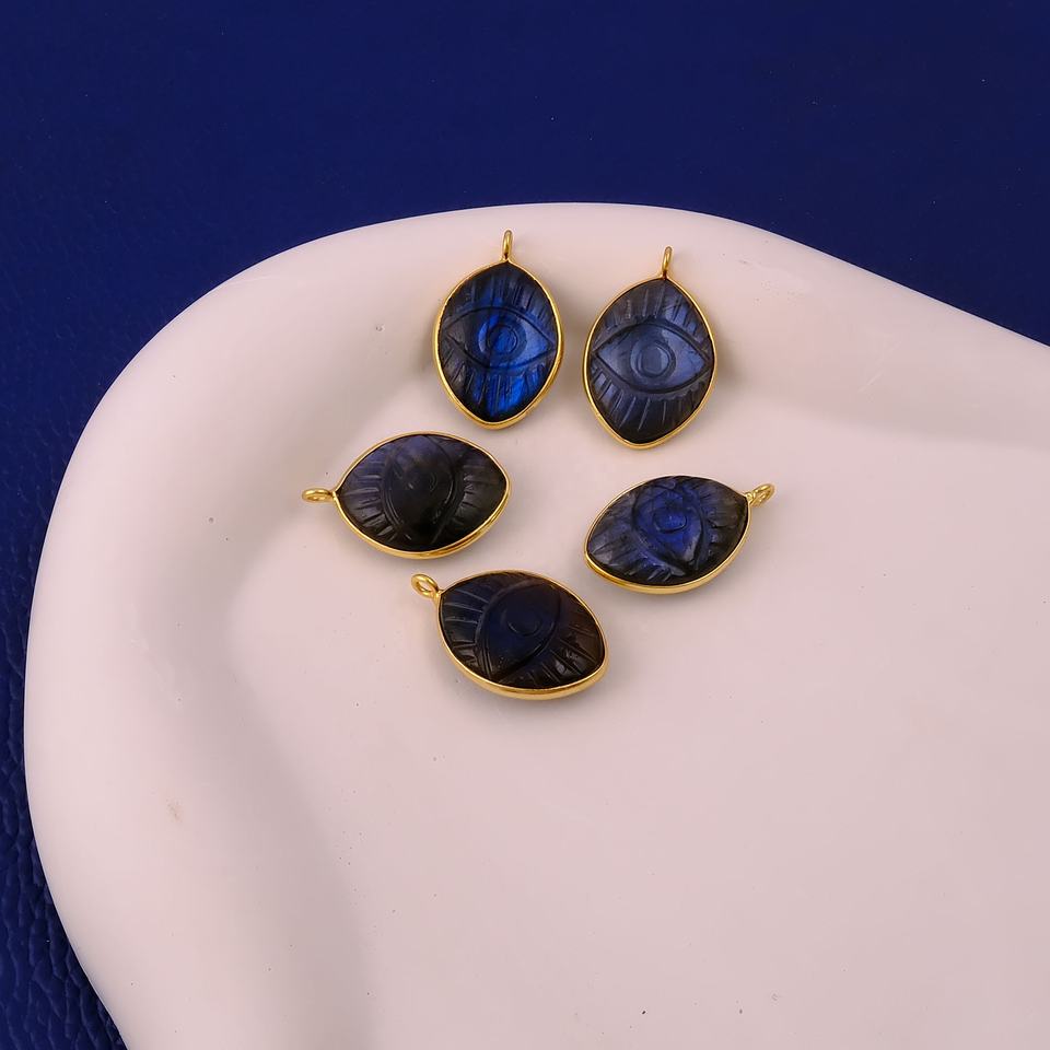 จี้รูปทรงมาร์ควิสทำมือจากพลอยลาบราโดไรต์ประกายระยิบระยับ ชุบทอง แฟชั่นทันสมัย ขายส่งจี้และชาร์ม
