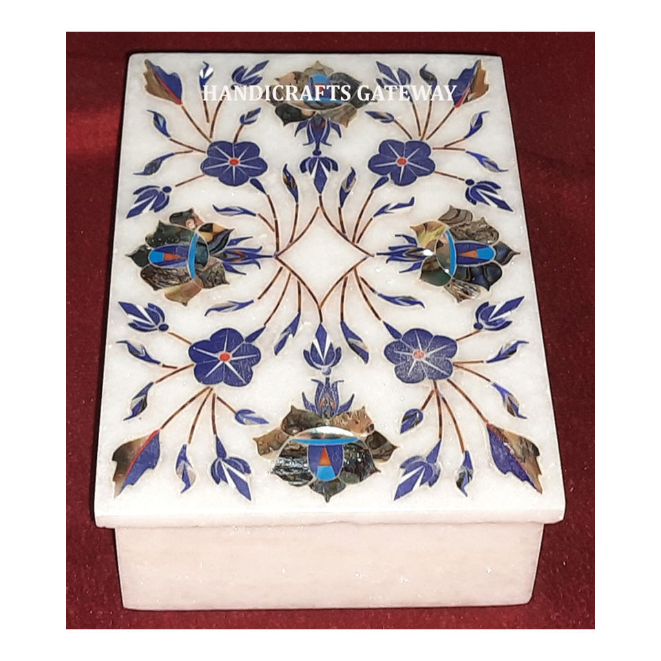 กล่องเครื่องประดับฝังสี่เหลี่ยมหินอ่อนสีขาวดีไซน์พิเศษทำด้วยมือพร้อมการออกแบบดอกไม้ที่สวยงามสำหรับเป็นของขวัญขององค์กร