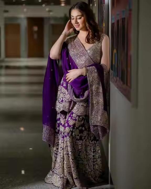 Lehenga choli ผ้าไหมแฟนซีสำหรับผู้หญิงแขนเต็มปักเลื่อมงานปาร์ตี้ฤดูหนาว