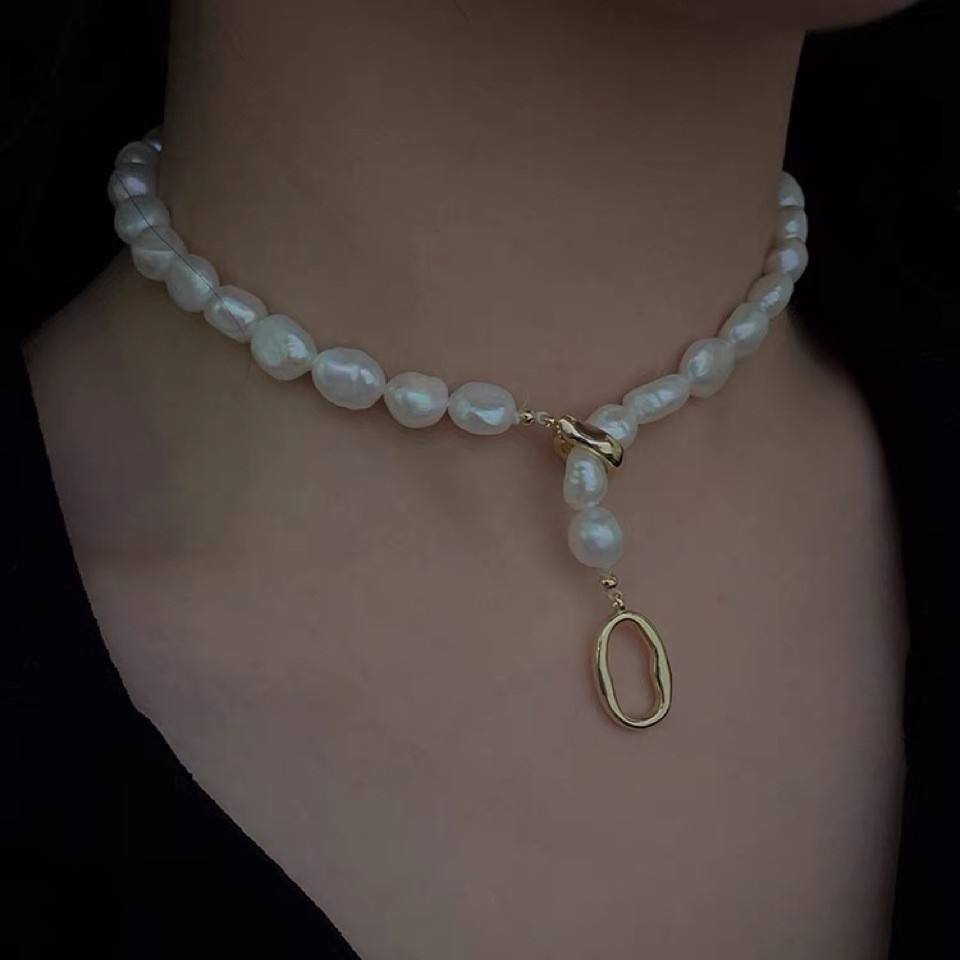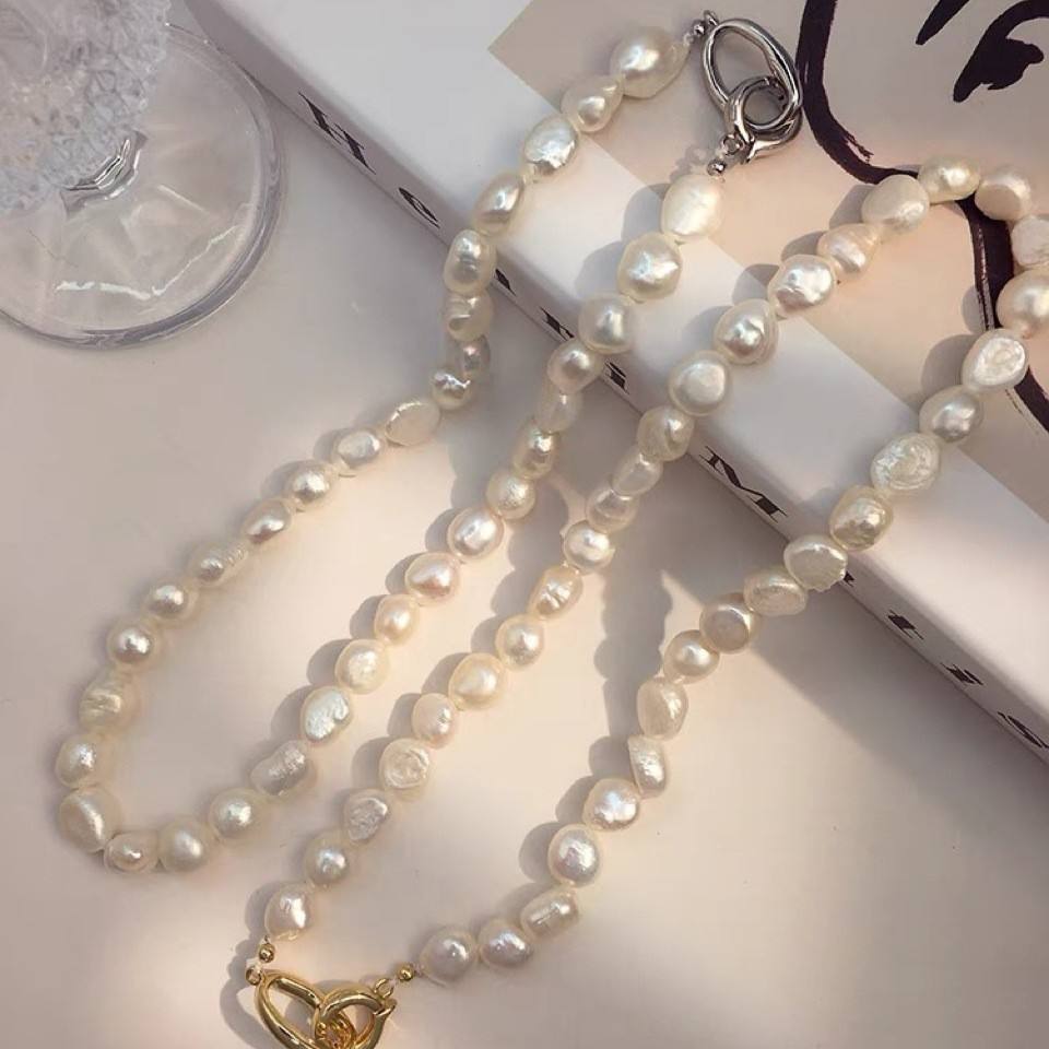 สร้อยคอไข่มุกแท้ทรงบาร็อคแบบสองชิ้น งานแฮนด์เมด ดีไซน์เก๋ สร้อยคอแฟชั่น