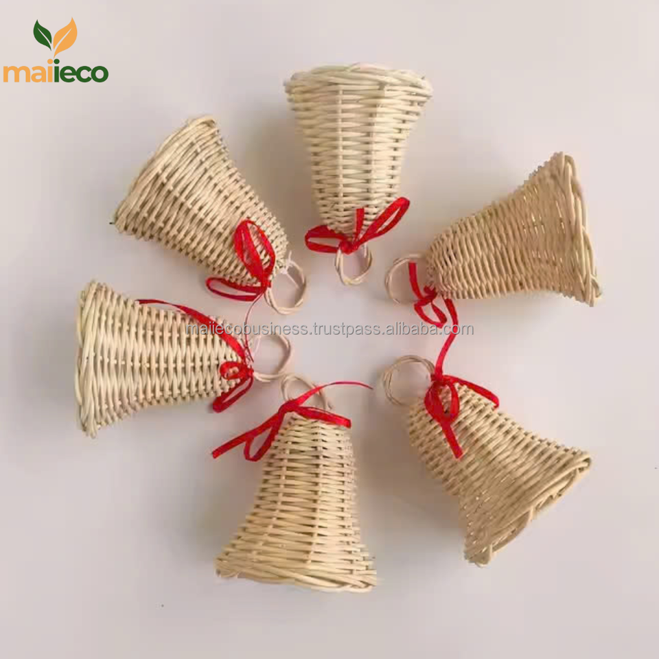คำอธิบาย:ระฆังหวายตกแต่งต้นคริสต์มาสของเล่นหวาย