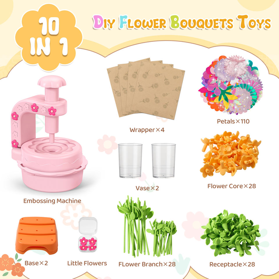 ชุดทำดอกไม้ผ้าทำมือ DIY ชุดของเล่นทำดอกไม้จำลองแบบกดสำหรับงานฝีมือวันเกิด
