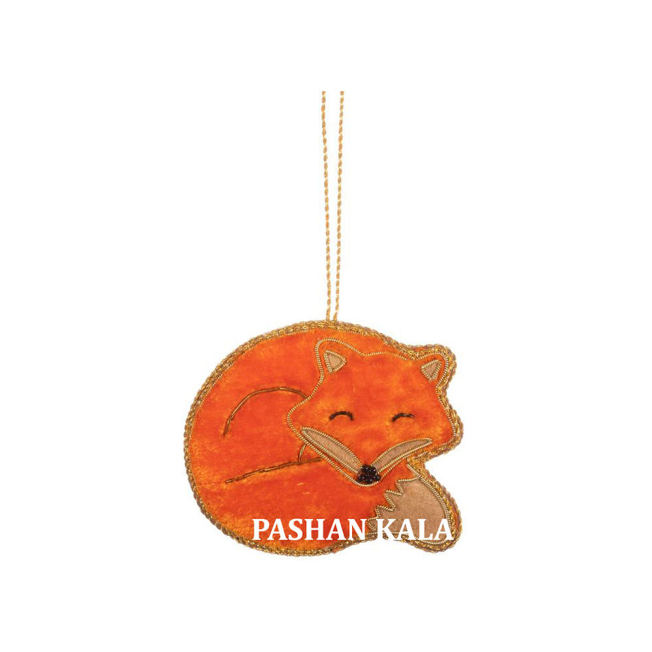 ผ้าแฮนด์เมดรูปสุนัขจิ้งจอกปัก zari ลูกปัดเครื่องประดับคริสต์มาสงานสำหรับแขวนปาร์ตี้ตกแต่งต้นไม้ในรายการโบราณ