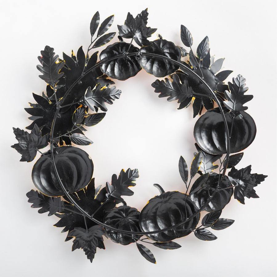 พวงหรีดดอกทานตะวันฟักทองทำมือสำหรับฤดูใบไม้ร่วง ตกแต่งผนังด้วยใบไม้โลหะ สำหรับเทศกาลเก็บเกี่ยว วันขอบคุณพระเจ้า ตกแต่งประตูทั้งภายนอกและภายใน