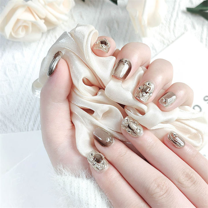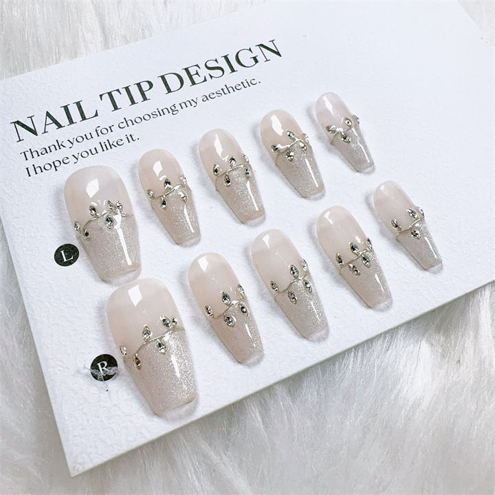 เล็บปลอมแบบกดบนเล็บปลอมทำด้วยมือสำหรับนิ้วพร้อมการตกแต่งเพชรเล็บอะคริลิคสุดหรูพร้อมอุปกรณ์เสริม