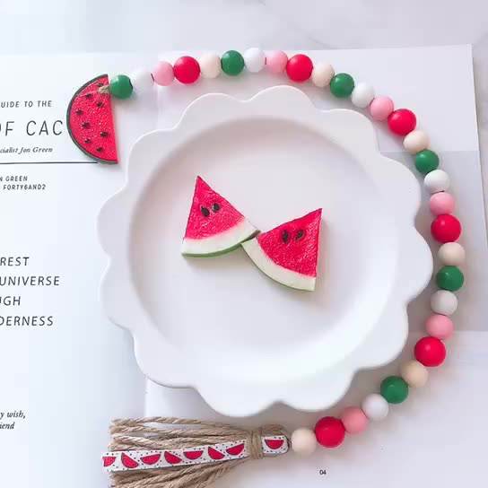 พวงมาลัยลูกปัดไม้สไตล์คันทรี่ฤดูร้อนแบบทำมือ พร้อมพู่ห้อยและป้ายมะนาว สำหรับตกแต่งผนังและถาดวางของแบบหลายชั้น