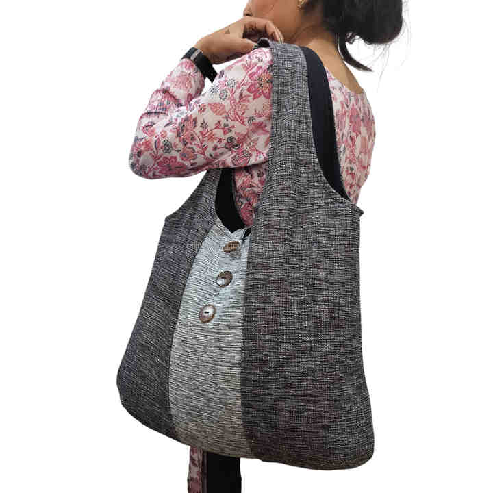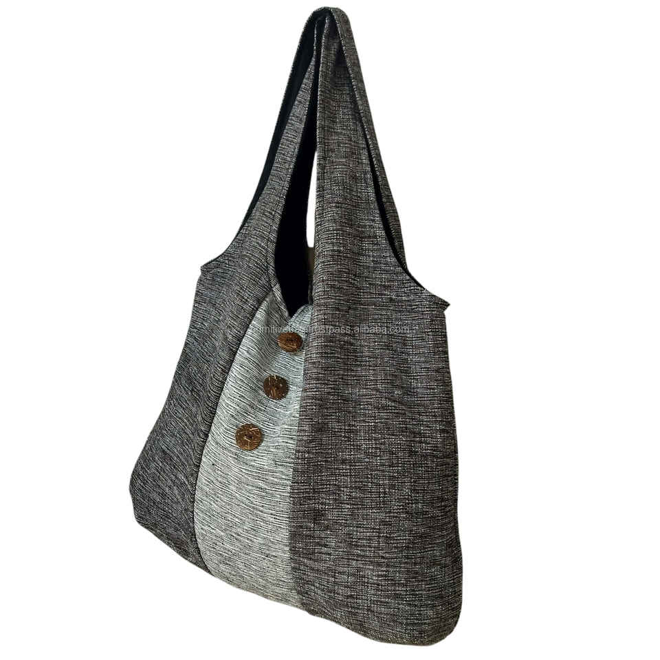 Handmade Fashion Bohemian Hobo Tote Bag for Women Eco-Friendly Coconut Button Two-Tone Shoulder Bag Lightweight Durable Nepal