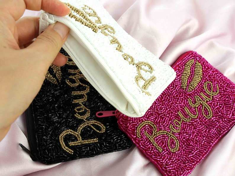 กระเป๋าสตางค์ประดับลูกปัดแฟชั่นงานแฮนด์เมดกระเป๋าใส่เหรียญกระเป๋าใส่เหรียญมีซิปปิดผ้าฝ้ายแบบพกพา
