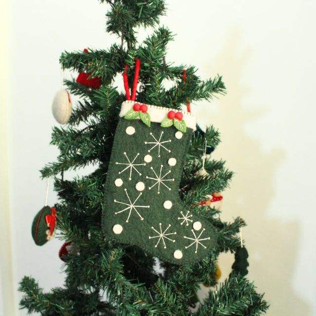 ถุงเท้าคริสต์มาสทำมือจากผ้าขนสัตว์-เป็นมิตรกับสิ่งแวดล้อม-นุ่มนวลสไตล์สแกนดิเนเวียพร้อมลายดาวสีเขียวขาว-ชุดของขวัญคุณภาพสูง