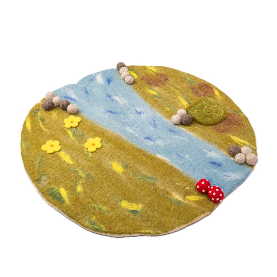 แผ่นรองเล่นทำมือจากผ้าสักหลาด ลายแม่น้ำ ทุ่งหญ้า ธรรมชาติ พร้อมดอกไม้และเห็ด ของเล่นเสริมพัฒนาการแบบมอนเตสซอรี่ วอลดอร์ฟ ขนาดสั่งทำได้