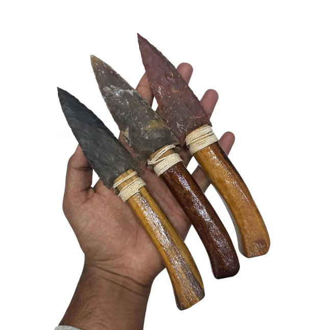 หัวลูกศรออบซิเดียนสีดำพร้อมด้ามไม้